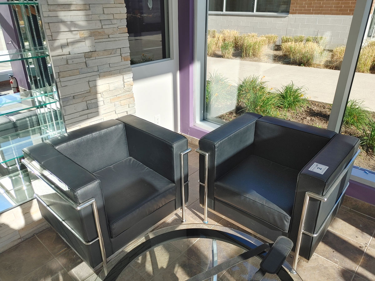 - (2) Black Leatherette Reception Chairs w/ Chrome Frame